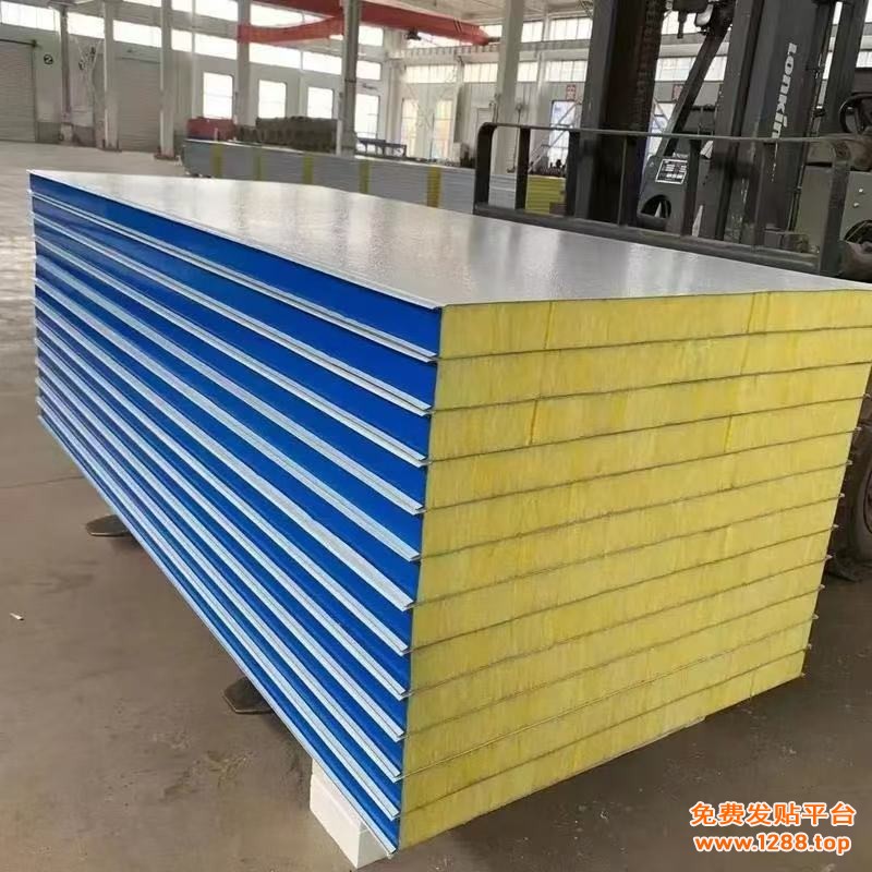岩棉彩钢夹芯板产品特点:防火性能好,岩棉物为内芯层或玻璃纤维,可适合任意防火等级要求